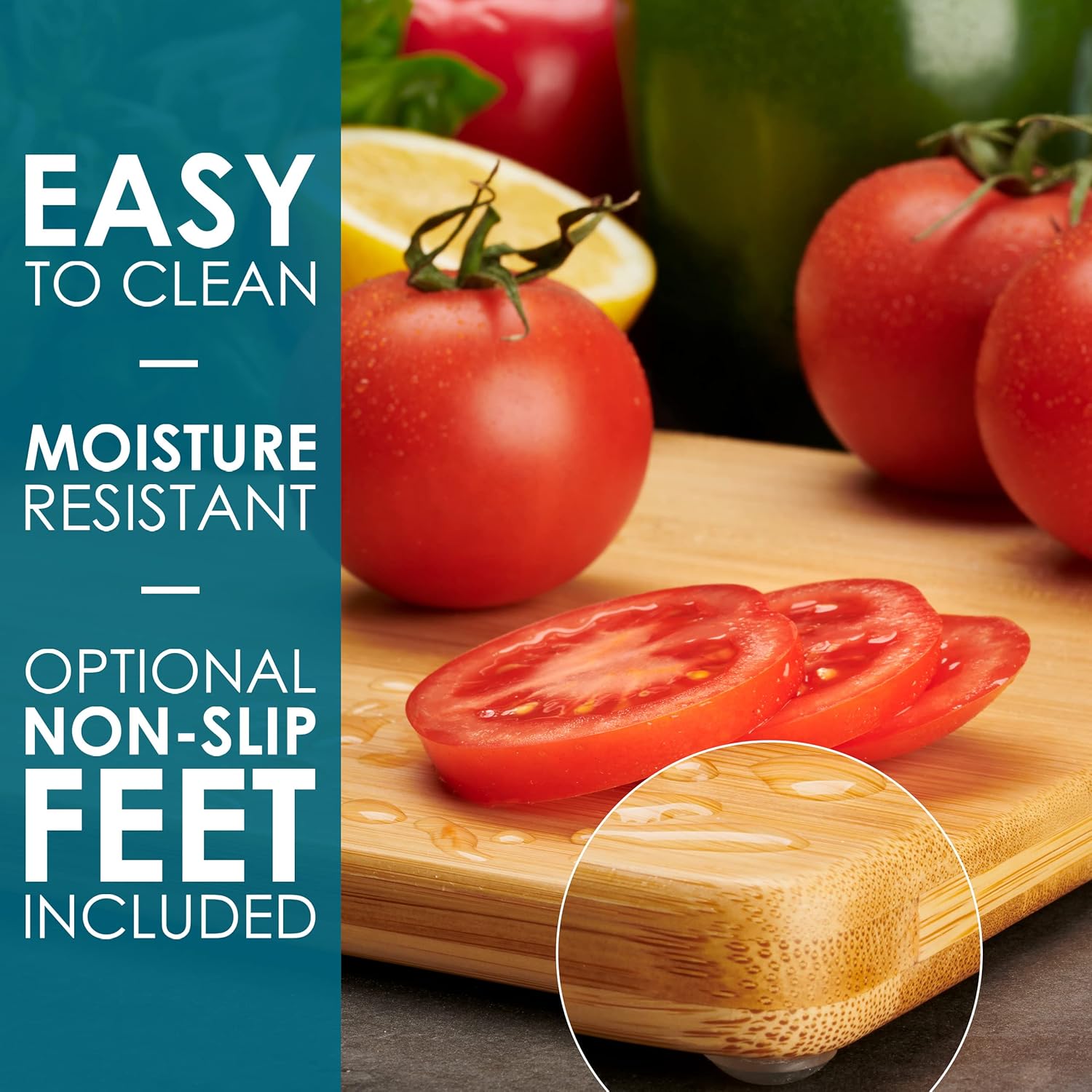 Extra Thick & Durable: Solid bamboo construction prevents warping and provides a sturdy, reliable base for all your food preparation needs.